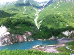 В июне 2007 г. был оползень. Но члены нашей команды воочию убедились в том, что природа сама может излечить себя и стать во много раз прекрасней!!! Законы природы действуют вне зависимости от человеческого участия. И уж точно человек не царь природы. А царствуют в долине медведи, к которым мы приехали в гости, а они снисходительно позволяют нам любоваться этой красотой. Мы видели следы их жития-бытия в долине и мечтали увидеть хоть одним глазком, и нам повезло. Мы встретили медведицу с двумя медвежатами, которые пришли на склон горы погреться.