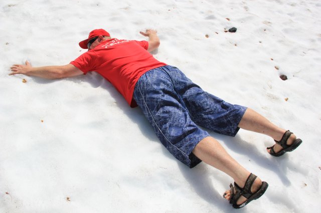 Группе ставились основные задачи: определить требования к обмундированию и снаряжению. Временной период восхождения занял 1,5 часа, но этого времени хватило для того, чтобы понять, что в сланцах цель не взять. Были проведены замеры температуры снежника методом оголенного торса. Вадим Наврат, припав к снежному покрову, проронил скупую мужскую слезу, вспоминая о зимней экспедиции. Но для нашей команды нет задач и целей, которых мы не можем достичь. Главное понять, как? Например, Леонид Аркадьевич даже пытался поджечь ледник! И у него это получилось! По возвращению основной группы костер был зажжен.