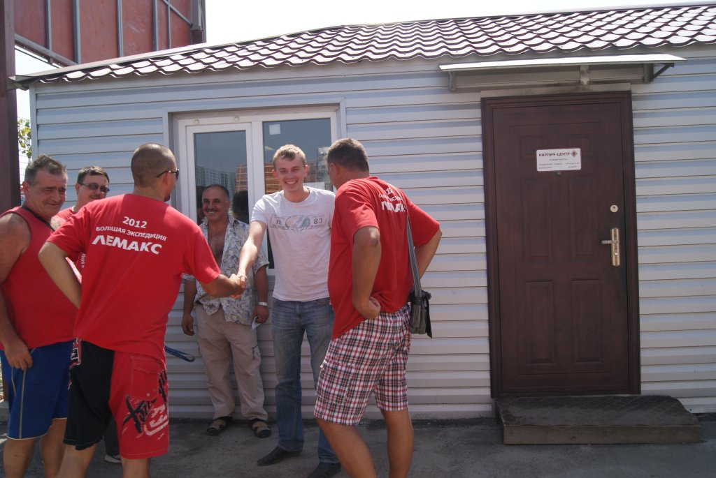 Наш путь домой начинается с посещения Краснодарской площадки «КИРПИЧ - ЦЕНТРА». Объятия, приветствия, заряжаем краснодарцев духом приключений. Экскурсию по территории проводит Алексей Саньков. В торговом зале классная экспозиция стеновых материалов! На витрине есть даже раритет - кирпич выпуска 1893г. Говорят, один из покупателей очень настойчиво просил продать ему партию такого кирпича! Ребята долго пытались ему объяснить, что это пока нереально, «машину времени» еще не изобрели. Среди ровно выставленных поддонов с кирпичом на складской территории хозяйничают 9 абсолютно черных котят. Это акция – при покупке кирпича каждому клиенту черного котенка в подарок. На счастье! Внимание, предложение ограничено!