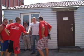 Вот и знаменитая тачанка-ростовчанка! С флагами и отличным бодрым настроением врываемся в рабочую атмосферу ростовских кирпич-центровцев. Дубль два - объятия, приветствия, заряжаем ростовчан духом приключений.
