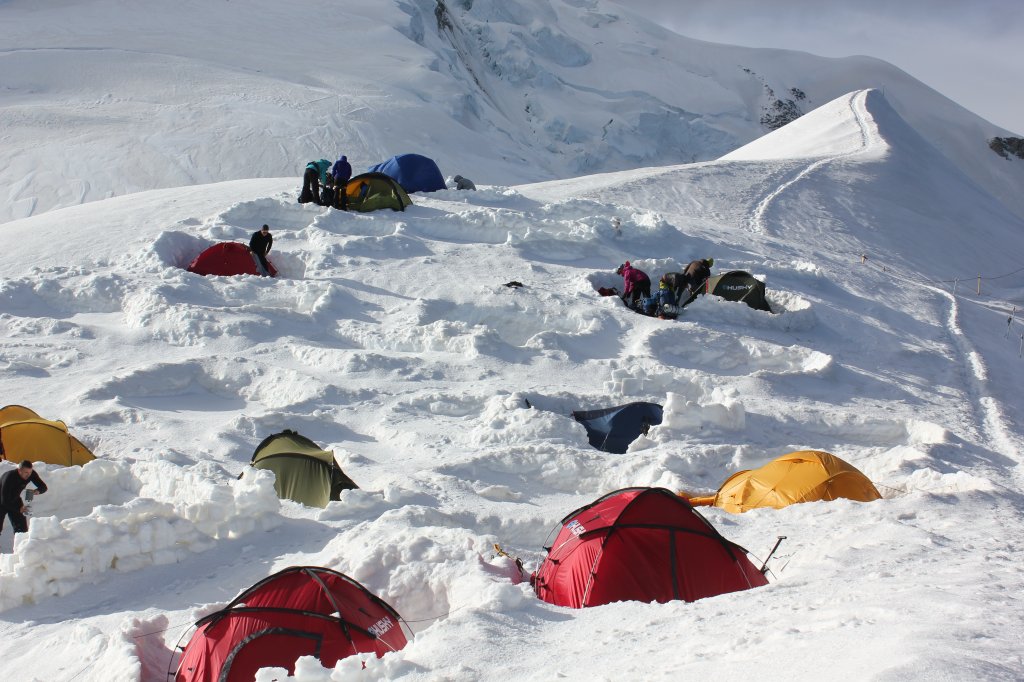 Но мы предполагаем, а погода делает свое дело. Характер погоды на Мон Блане своенравный и непредсказуемый. Ночью разразилась жуткая гроза. На такой высоте кажется, что молнии решили атаковать нашу палатку и били на поражение. Вокруг громыхало так, словно артиллерийская канонада. Ветер трепал нашу палатку, как будто собираясь разорвать ее в клочья. Природа решила нас взять в окружение и проверить не только на физическую выносливость, но и на стойкость духа. Если сказать Вам, что было жутко, это почти ничего не сказать о тех чувствах, которые мы испытывали. Вокруг слышались шаги и голоса людей. Сидя в палатке, мы не понимали: то ли они идут на Мон Блан, то ли уходят вниз.