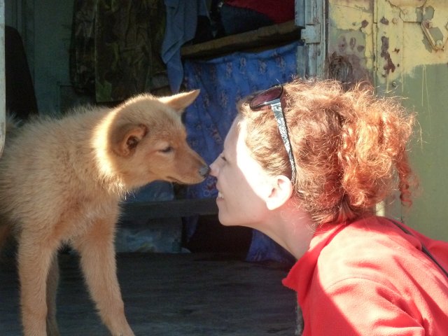 В компании время летит незаметно. И вот мы домчались до заповедника «ЮГЫД ВА». Нас встретили Сергей и маленькая рыженькая лайка по кличке Кайка. Мы сначала все подумали, что это настоящая лиса. Ну, вылитая ж! Сергей сказал, что это уникальная лайка и ее специально из Москвы сюда везли. На Камчатке мы повидали лаек всяких окрасов, но рыжих точно не было. Значит, и вправду уникальная.